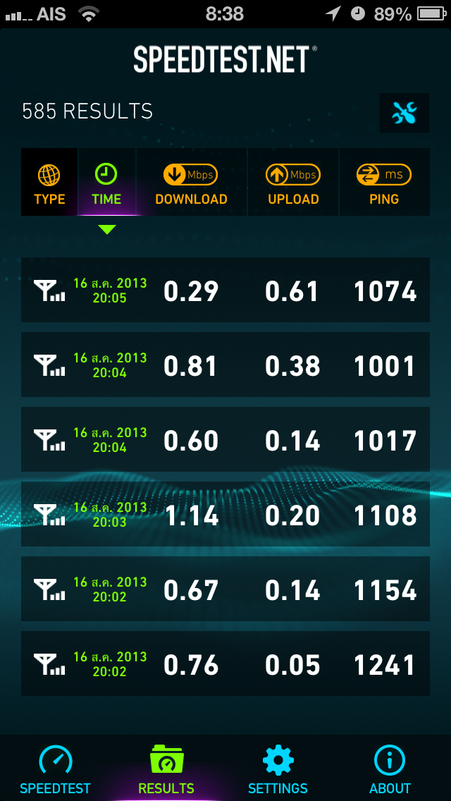 คืนก่อนนอนไม่หลับเลยลอง Speed Test เล่นๆดู 55555 ช่วงเวลาที่ทดสอบประมาณตี 1 ซึ่งน่าจะเป็นช่วงที่เครือข่ายค่อนข้างว่าง AIS 2100MHz dtac 2100MHz Truemove-H 850MHz Truemove-H 2100MHz แถม True