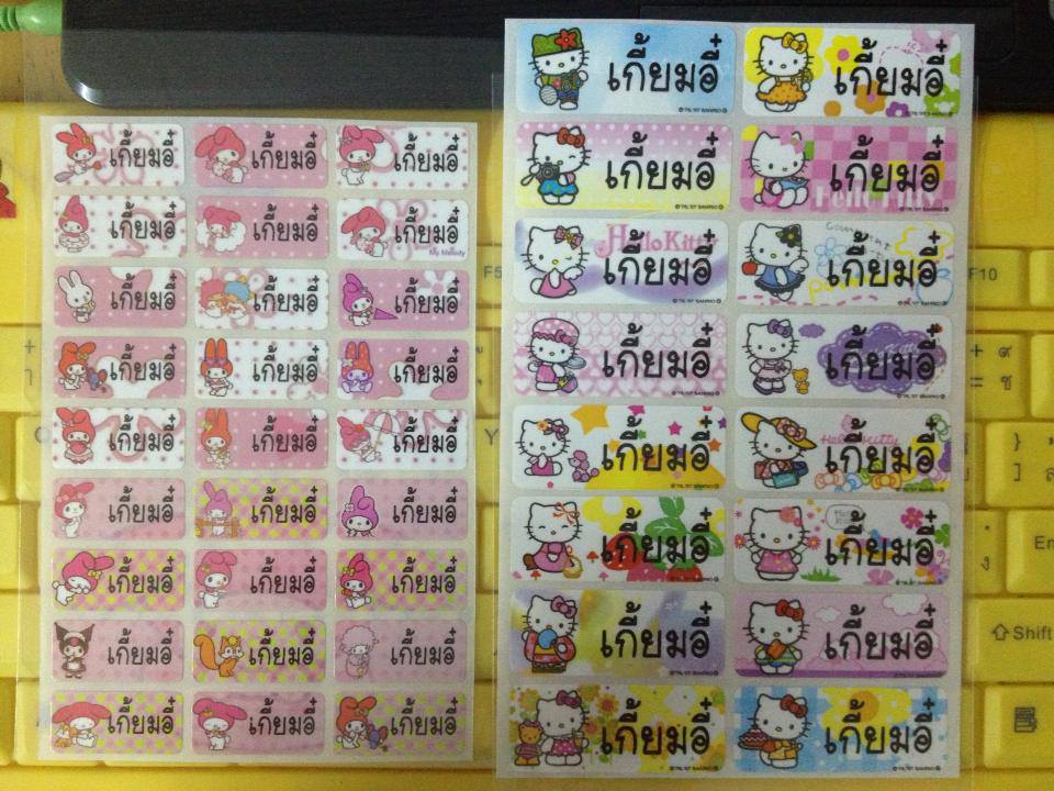 สติ๊กเกอร์ชื่อกันน้ำ คิตตี้ เมโลดี้ ริลัคคุมะ พูห์ ลิตเติ้ลทวินสตาร์ ซานริโอ้ มิกกี้ ฯลฯ พิมพ์ข้อความตามต้องการพร้อมส่ง