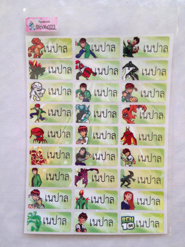 สติ๊กเกอร์พิมพ์ชื่อลูก ๆ กันน้ำ ลายการ์ตูน สำหรับติดของใช้ไปโรงเรียน