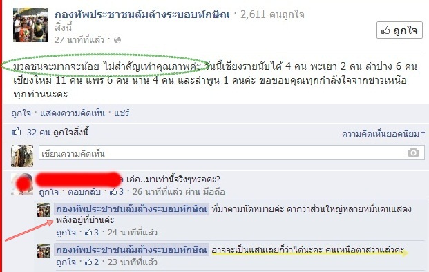 เป็นปลื้ม ... เห็นภาพมวลมหาประชาชนออกมาแล้ว หายเหนื่อยเลย ... ปล. พวกเราต้องเอาชนะพวกที่ชอบเลียแข้งเลียขา และอย่าให้พวกที่ชอบเลียแข้งเลียขามันได้ดี พวกมันสู้พวกเราไม่ได้แน่นอน โดย กองทัพประชาชนล้มล