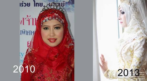 วันนี้ีคำถามสำคัญหลายอย่าง หลังจากเปิดดูรูปเก่าๆ ตั้งแต่สมัยจับผลัดจับพลูต้องไปดูร้านเว็ดดิ้ง ที่ปาดังเบซาร์เมืองชายขอบ ในราวๆปี 2009 สมัยนั้นชุดแต่งงานอิสลาม ราคา 1500 บาทต่อชุดก็ถือว่าแพงแล้ว ผ้าคลุมผมก็คลุมได้แย่มาก งานแต่งงานส่วนใหญ่ในภาพรวมสำหรับผมมองว่าตลก และโดนดูถูก เพราะ ตามหลังมาเลย์หลายปี เราลอกเค้ามา แต่ก็ตามหลังเค้า ไม่เข้าใจงาน แม้แต่คนพุทธบ้านเราดูงานมุสลิมก็ยังไม่เข้าใจว่าจะทาปากแดงขนาดนั้นไปทำไม ทำไมคลุมผ้าแบบนี้ และอีกหลายๆเรื่อง ทำให้เจ้าสาวส่วนใหญ่หนีการคลุมผ้า ค่านิยมท้องถิ่นต่างๆโดนล๊อกไว้ ทำให้ ช่องว่างระหว่างงานสากลและงานมุสลิมโดย แช่แข็งไว้หลายปี