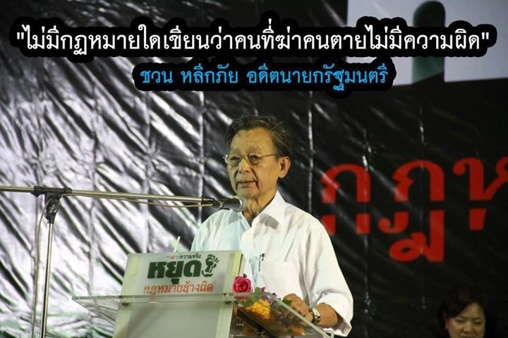 ไม่มีกฎหมายใดเขียนว่าคนที่ฆ่าคนตายไม่มีความผิด. บางพรรคกำลังจะทำให้คนที่ฆ่าคนตายเป็นความถูกต้อง.