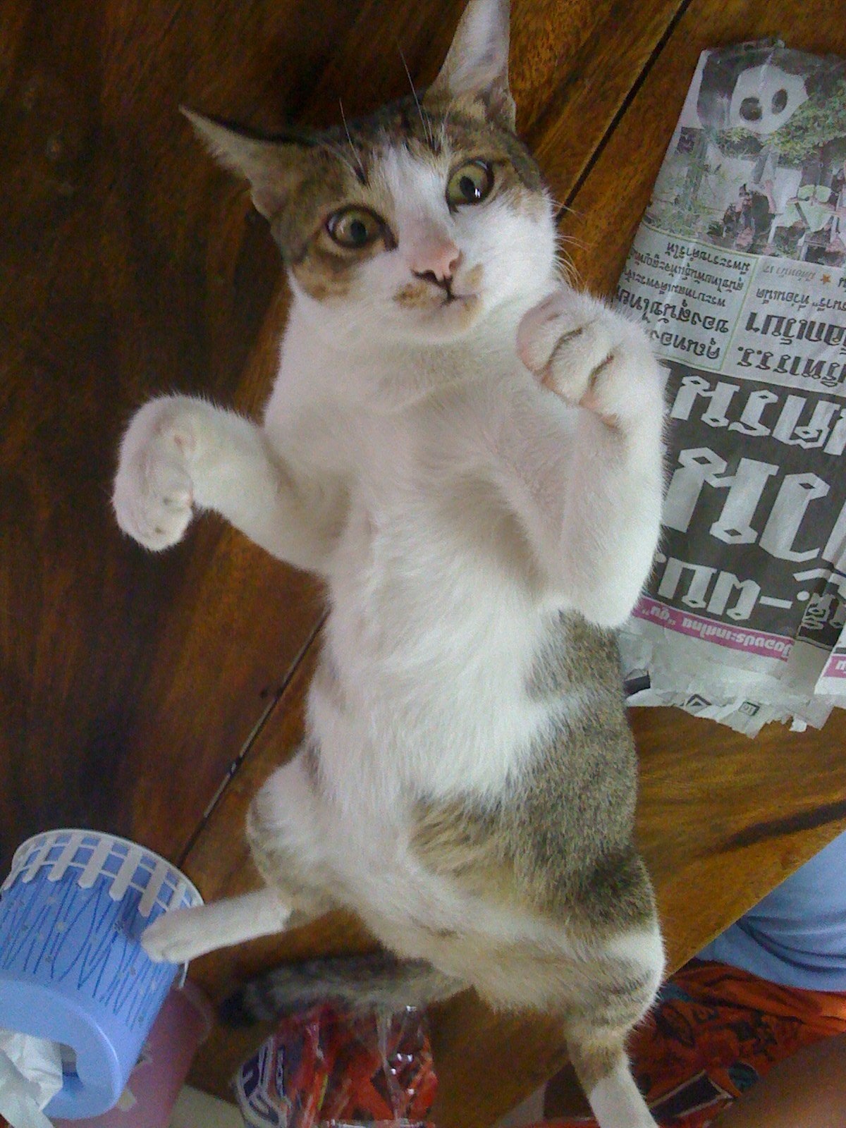 เจ้าของบ้านหลังนั้นถือไม้ตีหมาตัวเอง ส่วนเราได้แต่ตะโกนว่าช่วยแมวเราด้วย พอเจอเจ้ามั่ง ไม่มีแผลอะไร จำได้ว่าปีนั้นวันวาเลนไทน์กับวันตรุษจีน