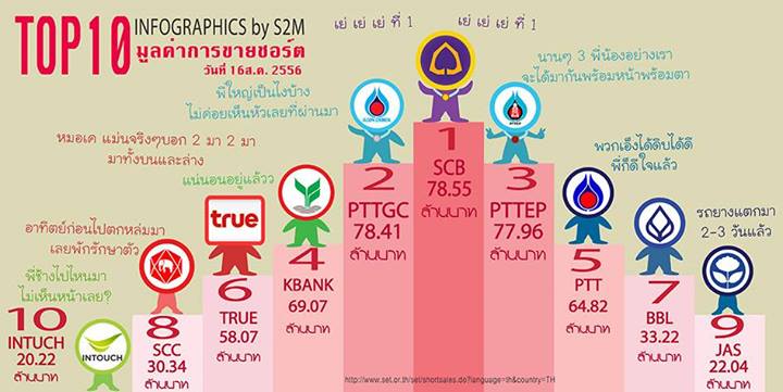 INTUCH มาเป็นที่ 1 มูลค่าชอร์ต 64 ล้านบาท ตามติดด้วย 2 แบงค์ใหญ่ SCB-BBL Infographic by stock2morrow