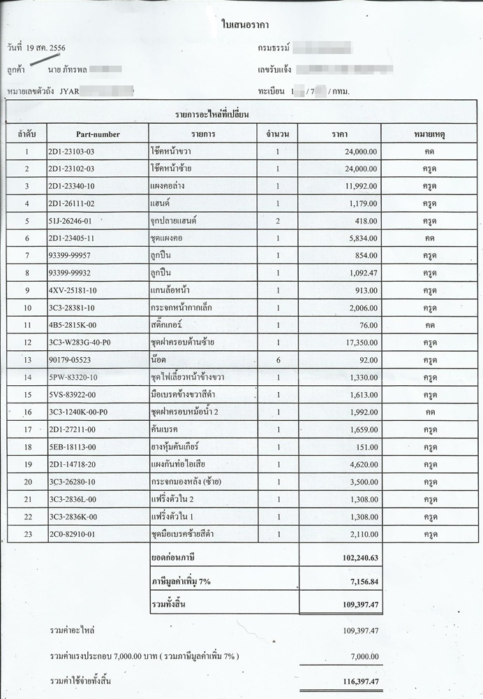 ผมก็เรียกประกันมาดูรถที่ศูนย์บริการ ดูความเสียหาย และผมขอให้ช่าง