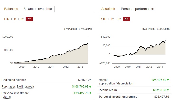 ผมลงกองทุนในอเมริกา (DCA) ตั้งแต่ปี 2006 คิดดูว่าเจอ 2008-2010 เข้าไปนี่เป็นยังไง กำไรหายเกลี้ยง (แต่ตอนนั้นเงินที่ลงยังน้อย กำไรที่หายไปเลยไม่เยอะเท่าไหร่) แต่ซื้อสะสมมาเรื่อยๆ ตอนนี้พอร์ตก็โตขึ้นมาก (กราฟที่โชว์เป็นกองทุนอย่างเดียว) จะเห็นได้ว่าช่วง 2008-2010 ยังไม่มีกำไรเลย ซื้อทุก 2 สัปดาห์ตลอดสองปี ไม่มีกำไร (ขาดทุนด้วยซ้ำ) แต่ดูหลังจากนั้นครับว่าเวลาหุ้นมันกลับมา กำไรขึ้นเร็วแค่ไหน บางคนอาจบอกว่าถ้าไปซื้อช่วงมันเริ่มกลับมา กำไรคงเยอะกว่านี้ แต่ทำได้จริงรึเปล่านี่อีกเรื่อง เพราะช่วงที่หุ้นมันขึ้นมาในปีสองปีมานี่ ไม่มีข่าวดีอะไรเลย ใครจะคิดว่าหุ้นมันจะขึ้นเอาๆ เพิ่งจะมีข่าวดีช่วงไม่กี่เดือนนี้เองว่า ศก อเมริกาเริ่มกลับมา (ดีจริงป่าวไม่รู้ เพราะข่าวลด QE ทำให้หุ้นตกอีกเหมือนกัน)