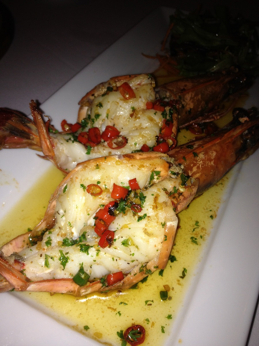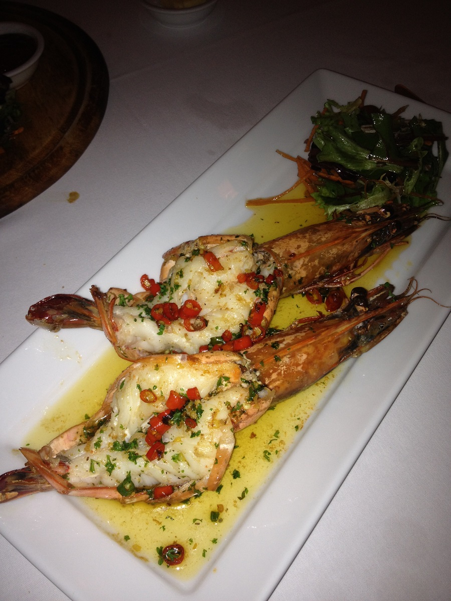 ของผมเป็น Grilled Tiger Prawn with butter chili (กุ้งลายเสือย่างกับเนยและพริก)