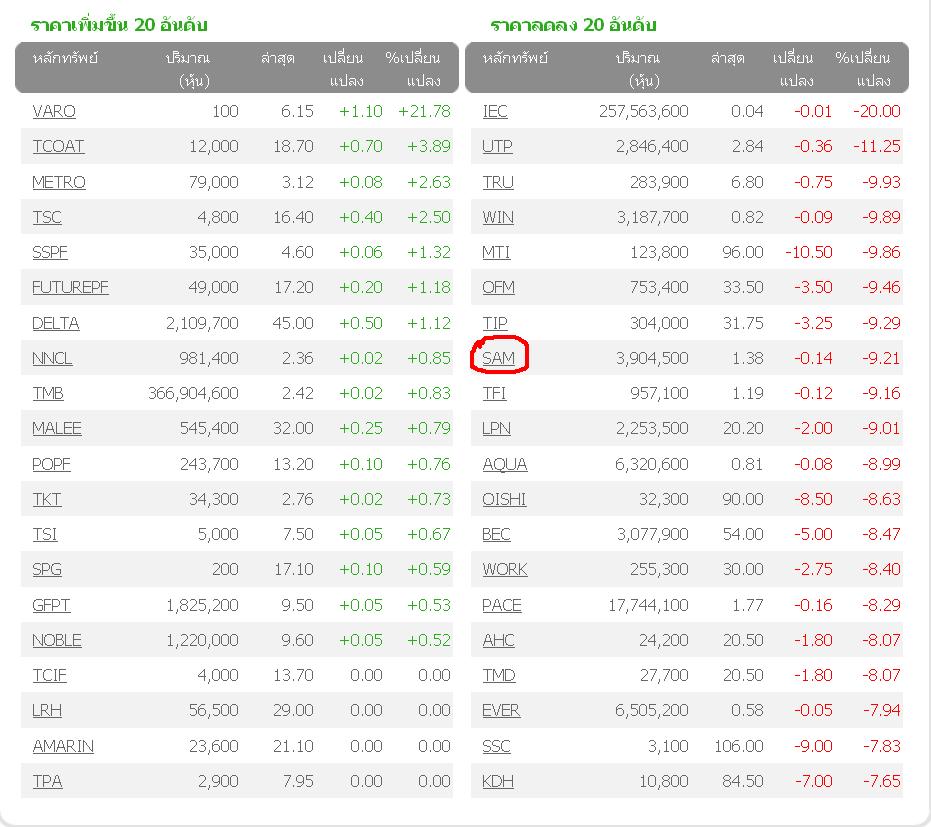 ใน settrade ทำไมการจัดลำดับพวกราคาลดลง 20 อันดับแรกถึงไม่มีพวก aim หรือ sam ครับ