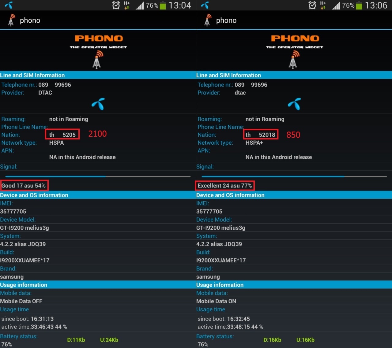 เครื่องนี้ support 3G 850/2100 โดยตั้งไว้ให้เป็น 3G only ลอง Search network เจอทั้ง True, True 3G+, TH 3G+, dtac, dtac trinet, AIS >> สงสัยว่าจะรู้ได้ยังไงว่าอันไหนเป็น 850 หรือ 2100 AIS = 210