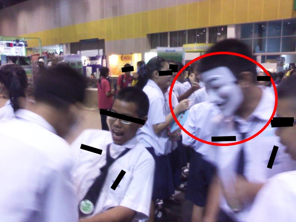 วันนี้ลูกสาวผมไปทัศนศึกษาที่ ไบเทค บางนา ลูกสาวกลับมาเล่าให้ฟังว่า วันนี้ไปดูนั่นดูนี่ในงาน แล้วก็มีของขายหลายอย่าง แต่มาสะดุดตรงที่มีร้านนึงขายหน้ากากด้วยป๊า หน้ากากขาวๆ มีหนวดด้วย แล้วเค้าก็เข้าเฟสเพื่อนๆเค้าให้ผมดูตัวอย่างหน้ากาก ผมเห็นผมตกใจเลย ว่าคนพวกนี้ทำไมช่างไร้จิตสำนึก เอาเรื่องความเห็นส่วนตัวด้านการเมืองไปใส่หัวเด็กๆที่ยังบริสุทธิ์ เด็กๆเค้ายังใสซื่อบริสุทธิ์ เค้าไม่รู้เรื่องการเมืองของผู้ใหญ่หรอก คนที่ทำเรื่องนี้ คุณมีจิตสำนึกบ้างไหม หาคนไม่ได้เลยไปหากับเด็กๆที่ยังไม่รุ้เดียงสา เลยหรือ ผมอยากบอกว่าคุณชั่วบริสุทธิ์เลย