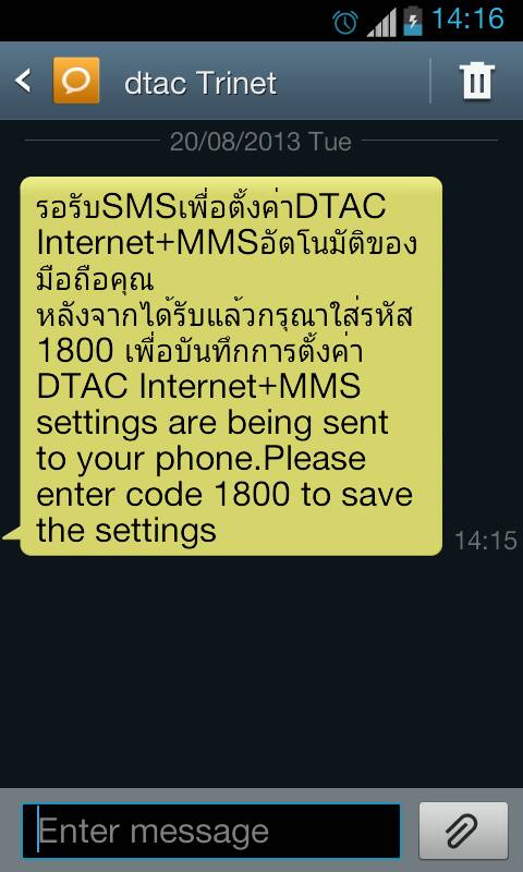ผมตั้งกระทู้ถามไป ช่วงบ่าย 2 วันนี้ 20 ส.ค. 56 ก็ได้รับ SMS