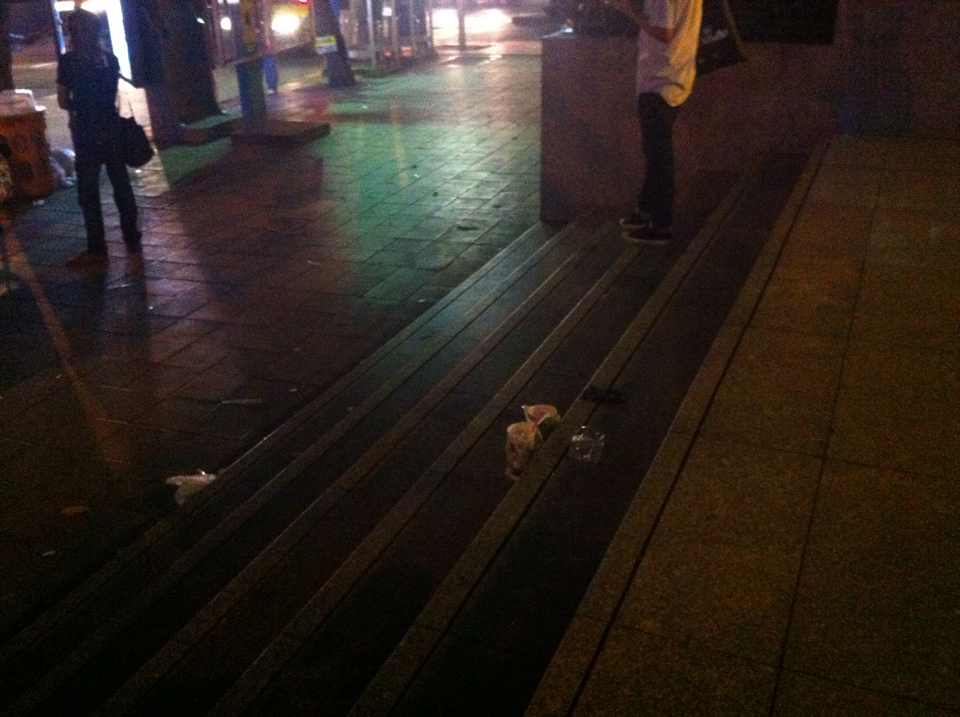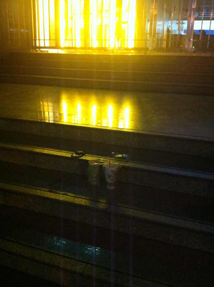 เมื่อทั้งสองคนเดินมาถึงป้ายรถเมล์ เด็กน้อยที่เดินต้อยๆ ก็พลันหยุดชะงัก และทำหน้าประหลาดใจ ดวงตาที่เต็มไปด้วยความสงสัยคู่นั้นจับจ้องไปยังชายหนุ่มหญิงสาววัยทำงานคู่หนึ่งที่รีบวิ่งไปขึ้นรถเมล์ พลางทิ้งแก้วกระดาษสองใบที่ไม่เหลือของเหลวภายในแก้วแล้ว พร้อมกับฝาที่วางระเกะระกะบนบันได ให้คนที่เดินผ่านไปมา ดูเป็นของต่างหน้า แก้วสองใบที่วางอยู่ตรงบันไดอันกว้างขวางแลดูเป็นจุดเด่นยิ่งนักในสายตาของเด็กน้อย