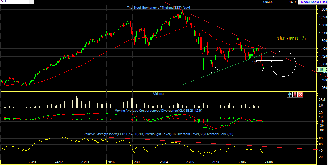 กราฟเดย์ ทำรูป descending triangle macd ยังไม่ขึ้นเหนือเส้นศูนย์ และอยู่ใต้เส้นสัญญาณ rsi ใกล้เขตขายมากเกินไป set week กดดัน ในทางลง มากกว่าขึ้น เทรด ด้วยความระมัดระวัง ครับ ^^ กรอบรีบาวน์ 1350 - 1430 ^^