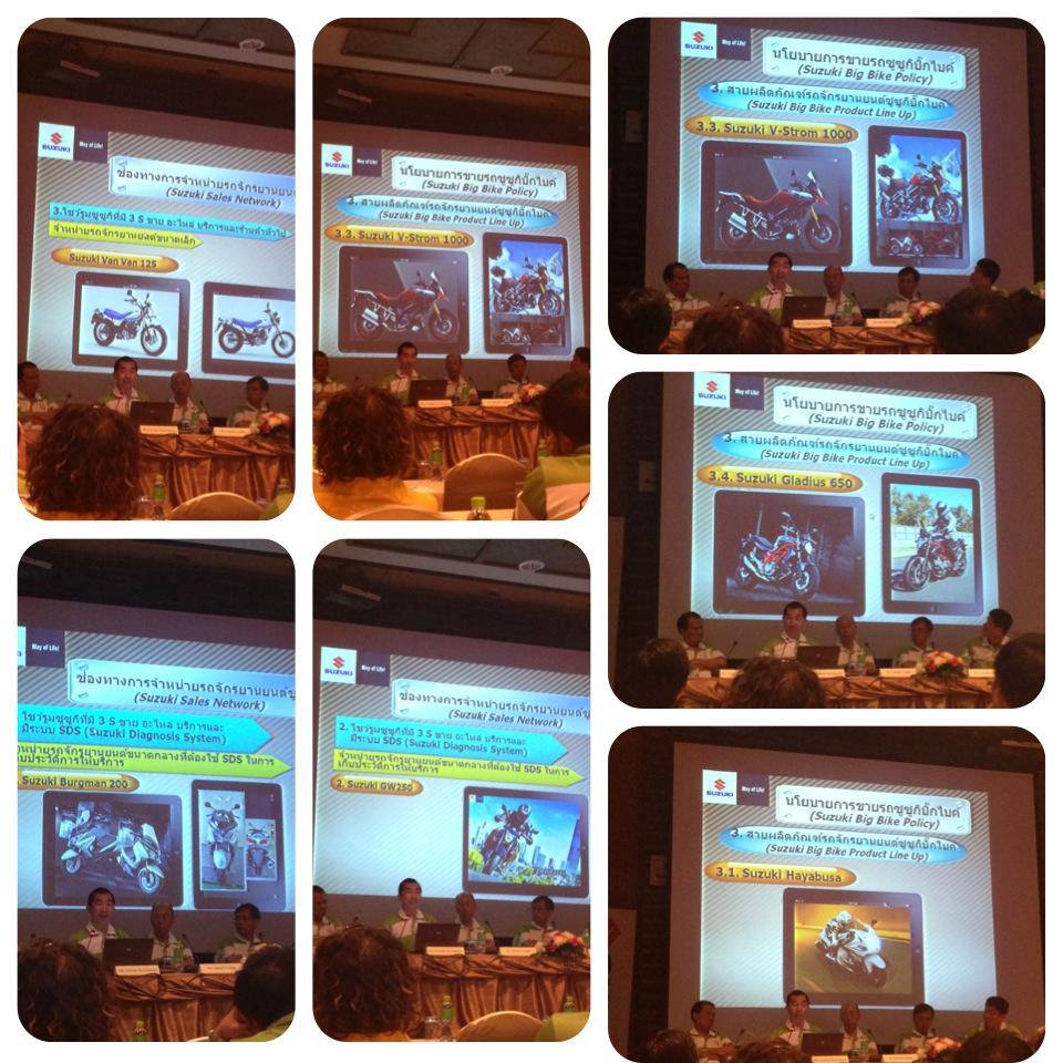 .....ปีหน้า Suzuki เตรียมตัวรุกตลาดเมืองไทยด้วยการส่ง BigBike ตั้งแต่ 250-1200cc ไม่ต่ำกว่า 7 รุ่น โดยได้มีการนัดดีลเลอร์เข้าเรียกประชุม เพื่อเตรียมความพร้อมในการวางจำหน่าย..