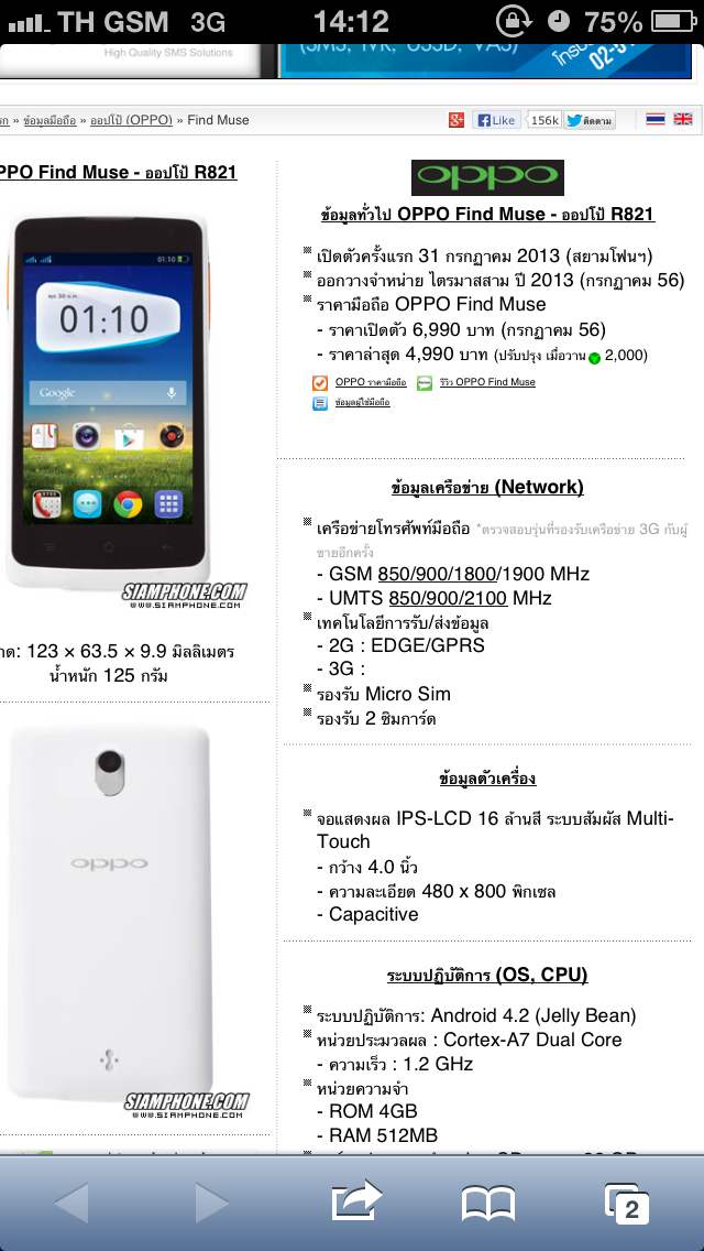 oppo find 7a รับคลื่นความถี่ 4g ใดบ้าง