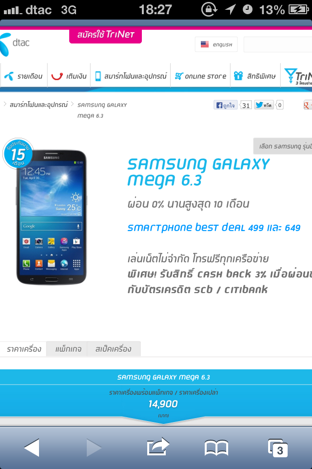 สอบถาม โปรโมชั่น Samsung Mega 6.3