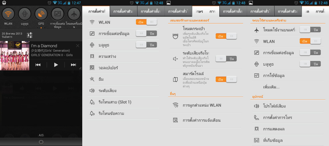 แถบ Notification หน้าตาวัยรุ่นจังและในส่วนของตั้งค่าผมว่าออกแบบมาดีนะครับ ส่วนตัวผมชอบแหะใช้งานง่ายและดูดี ผมขอชมคนทำ UI เลยละขนาดมือใหม่นะเนี่ย