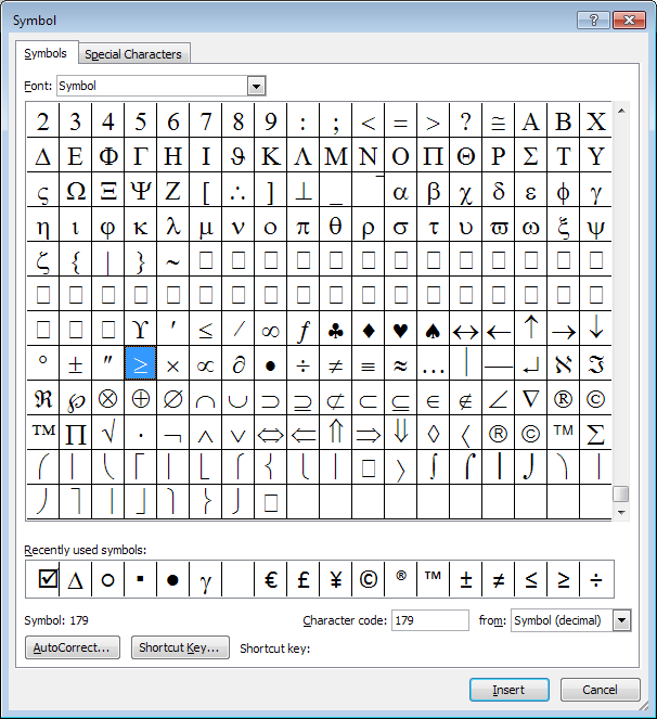 เปิดหาสัญลักษณ์ที่ต้องการใช้ครับ โดยไปที่เมนู หรือปุ่ม Insert > Symbol...