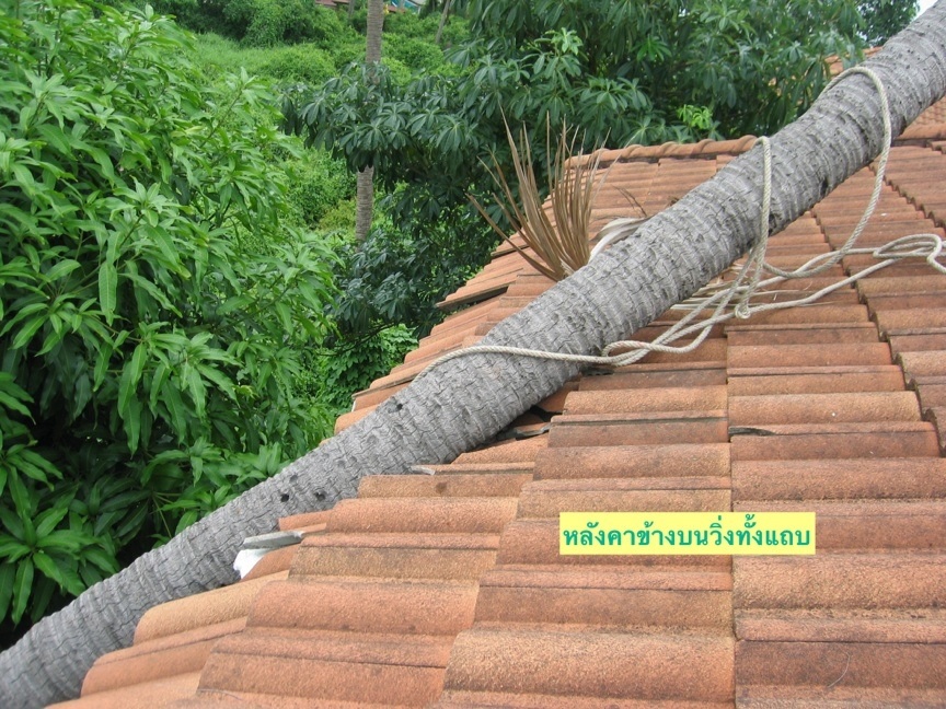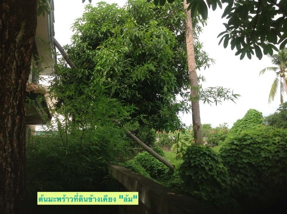 เนื่องจากวันที่ 23 มิถุนายน2556 เวลาประมาณ 11.00น. เป็นวันอาทิตย์ที่กรุงเทพมีแค่ฝนปรอยๆ ไม่ได้มีลมฝน ลมพายุ แต่ได้เกิดเหตุการณ์ ต้นมะพร้าวที่อยู่ในที่ดินผืนใหญ่ 2 ไร่ 81วา แปลงข้างเคียง ได้"ล้มทับหลังคาบ้าน"ของ จขกท.