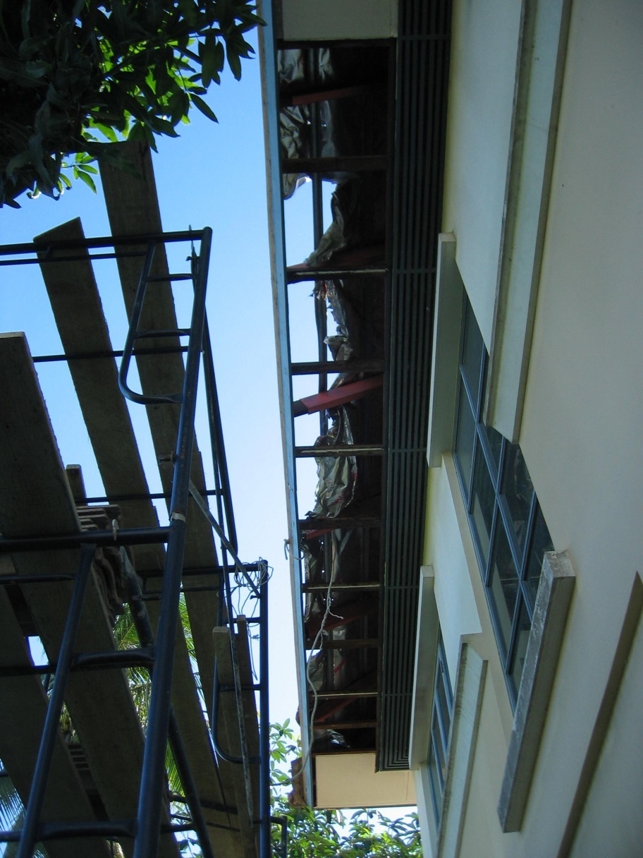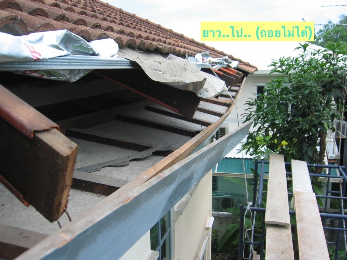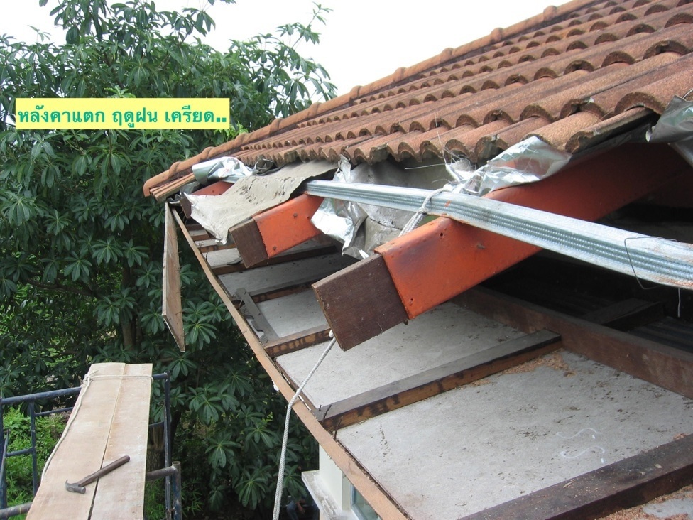 วันต่อมา คุณวิทยา ก็เข้ามาดู ณ.ขณะนั้นเพิ่งเอาต้นไม้ออก การซ่อมยังไม่ได้เริ่ม ก็ได้แต่ แหงนถ่ายรูปจากด้านล่าง (คุณแม่ จขกท.บอก เพราะออกไปธุระข้างนอก)