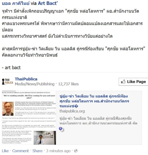 ..เรื่องนี้ ผมอยากติงสื่อนิดหนึ่งครับ ที่บอกว่า คำพิพากษาสิ้นสุด ธรรมรักษ์ไม่ผิด เพื่อไทยไม่ได้รับความเป็นธรรม.. ..คดีนี้คำพิพากษา ในส่วนของธรรมรักษ์ สิ้นสุดตั้งแต่ศาลอุทรณ์ เมื่อศาลอุทรณ์ไม่เห็นฟ้อง