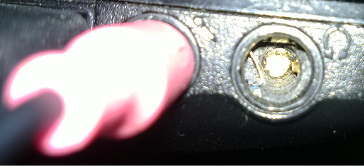 ที่เห็นขอบยับๆยู่ยี่ทางด้านขวาคือปลายที่หักค้างอยู่ครับ ยับยู่ยี่เพราะความพยายามงัดมันออกมา(เฟลมาก)
