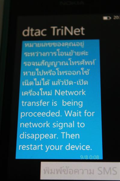 เจ้าหน้าที่ : ขอโทษที่ให้รอค่ะ ตอนนี้เบอร์คุณอยู่ในระหว่างการโอนย้ายเครือข่ายไตรเน็ตค่ะ