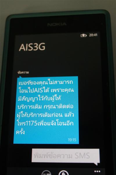 หลังออกจากศูนย์ DTAC ก็ตรงไปที่ AIS ทำเรื่องขอย้ายค่ายเบอร์เดิมทันทีทันใด(เบอร์ผมใช้มาหลายปีและเครื่องก็ซื้อแบบไม่ติดสัญญา) ไม่นานก็ได้รับซิมของ AIS พร้อมกับเจ้าหน้าที่แจ้งว่ารอ 3 วันทำการ นับจากวันที่ 9 /8/56 แต่เจ้ากรรมวันที่ 9 ดันเป็นวันตัดรอบบิล แจ้งอีกที่วันที่ 12 /8/56 วันที่ 13 ได้รับข้อความจาก AIS ว่าไม่สามารถโอนเครือข่ายได้เนื่องจากคุณมียอดค้างชำระและติดสัญญาอะไม่เป็นไรดันมาตรงพอดีคืนวันที่ 13/08/56 ก็รีบไปชำระค่าบริการทันทีแล้วโทรไปแจ้ง AIS ว่าจ่ายเรียบร้อยและรบกวนทำเรื่องให้ใหม่ ก็รอไปอีก 3 วันทำการ จนวันที่19/08/56 ก็เอาอีกและไม่สามารถโอนย้ายได้เนื่องจากติดสัญญา "งงสิครับติดสัญญาไรว่ะเนี๊ย" รีบโทรไป call center dtac เจ้าหน้าที่ทำการตรวจสอบก็บอกว่าคุณไม่ติดสัญญาอะไรนะค่ะ อ้าวงงเลยตรู ทำเรื่องใหม่อีกครั้ง ในวันที่ 20/8/56 มาวันนี้ ได้รับข้อความเดิมอีกแล้วครับ