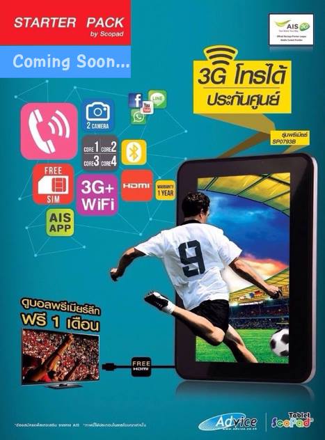Tablet รุ่นใหม่จาก Scope รุ่น "พรีเมียร์" SP0793B แถม ดูบอลฟรี 1 เดือนเต็ม ๆ