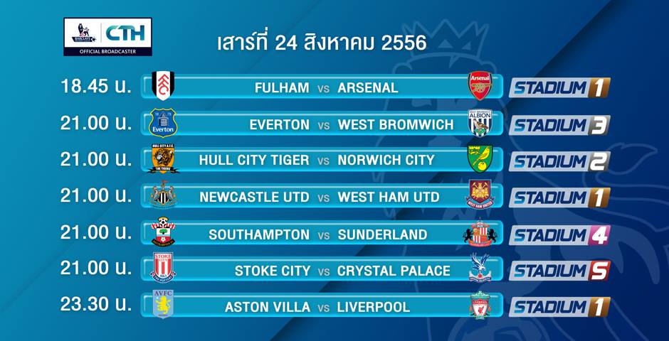 ตารางการแข่งขันสำหรับวันนี้ (24/08/2556)