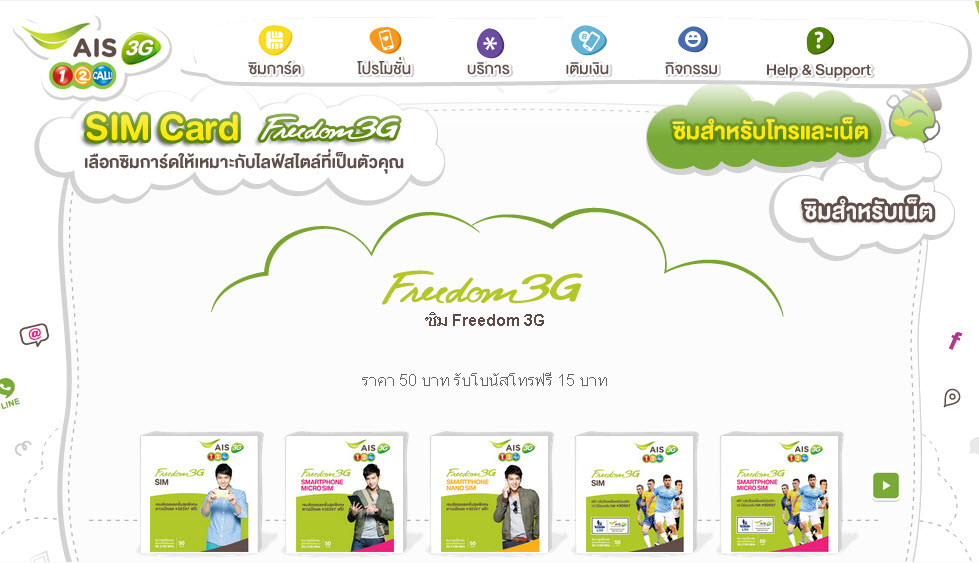 สอบถาม CC AIS วันนี้ผมซื้อ Freedom Sim 3G 50 บาทเพื่อมาใช้ในโปรโมชั่น เหมาเหมาโซเชี่ยล 14 บาท ตามเว็บ (http://www.ais.co.th/3g-one-2-call/th/promotion-detail.aspx?type=net&id=39) และ ใช้รับสายโทร