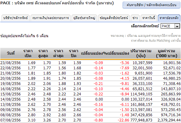 PACE เข้าตลาดมา 12 วัน ไม่เคยเขียวแม้แต่วันเดียว แดง 11 วัน เหลือง 1 วัน