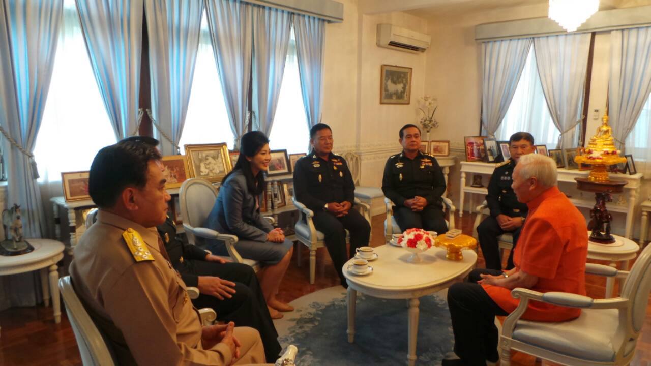 พล.อ.เปรม ได้เดินออกมารับคณะนายกรัฐมนตรี ด้วยตัวเองที่บริเวณตัวบ้าน โดยใส่เสื้อสีส้มทั้งนี้เมื่อคณะนายกรัฐมนตรี เจอหน้า พล.อ.เปรม ได้กล่าวยกมือไหว้ และกล่าวทักทาย โดยมีสีหน้าที่ยิ้มแย้มตลอดเวลา ก่อนที่ พล.อ.เปรม จะเชิญคณะนายกรัฐมนตรี เข้าไปยังห้องรับรองภายในบ้านพัก หลังจากนายกรัฐมนตรีได้นำพวงมาลัยที่ได้เตรียมไว้มอบให้กับ พล.อ.เปรม พร้อมกับกล่าวอวยพรขอให้ พล.อ.เปรม มีสุขภาพแข็งแรง หลังจากนั้น พล.อ.เปรม ได้กล่าวขอบคุณนายกรัฐมนตรี และคณะที่เดินทางมาอวยพรในครั้งนี้ พร้อมกับกล่าวว่า อยากเห็นบ้านเมืองมีความรักความสามัคคี โดยเฉพาะกองทัพจะต้องเป็นหนึ่งเดียว มีความสามัคคี และขอให้ทหาร และ กองทัพ สนับสนุนนายกรัฐมนตรีในการทำงานเพื่อประเทศชาติ