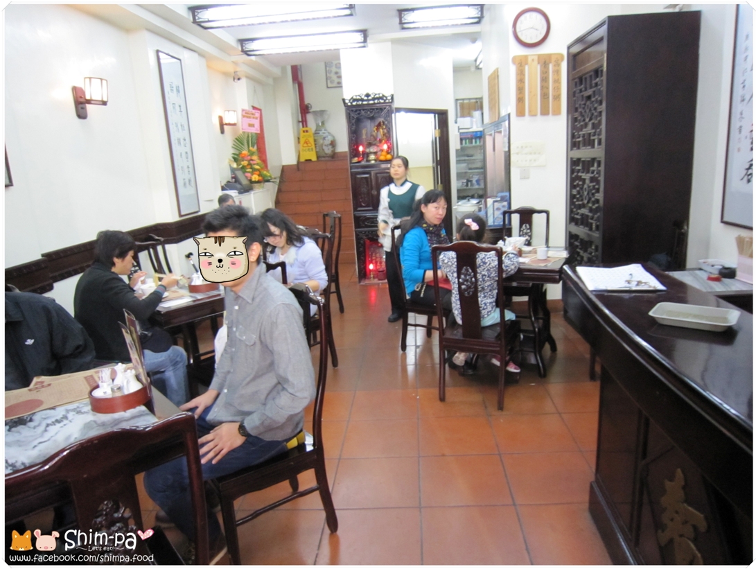 เดินตรงเข้ามาในร้าน ก็จะเจอกับบรรยากาศแบบนี้ --- ถือว่าค่อนข้างเล็ก เพราะเป็นแค่ห้องคูหาเดียวเองอ่ะ และเท่าที่เห็นในรูป ก็มีอยู่แค่ 4 โต๊ะเท่านั้น... ถึงแม้ว่าร้านจะเล็ก แต่ยังมีชั้นบนอีกนะ ไม่แน่ใจเหมือนกันว่า มีทั้งหมดกี่ชั้นกันแน่ เพราะไม่ได้เดินขึ้นไปดูอ่ะ ^^" ส่วนการตกแต่งก็เป็นแบบจีนๆ ธรรมดาๆ เรียบง่าย ไม่หวือหวา แต่ก็ได้ feel ไปอีกแบบ ดูเป็นร้านท้องถิ่นดี