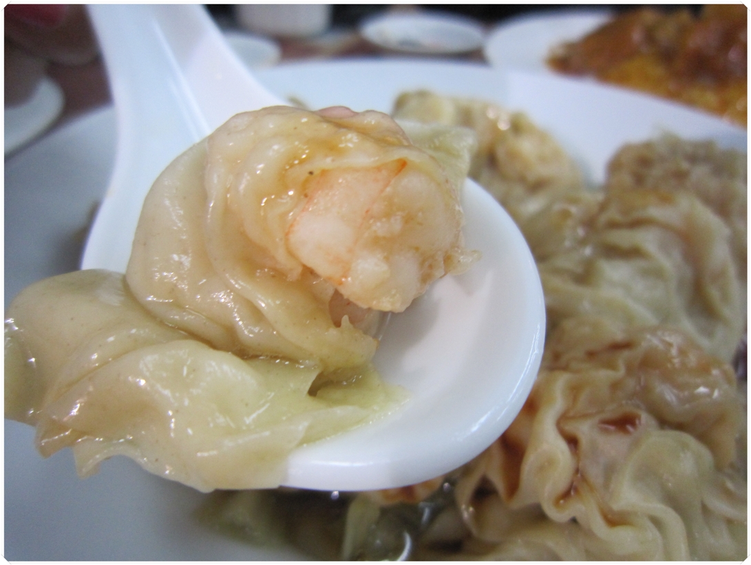 เป็นไง เส้นบะหมี่อย่างเยอะ เมนูนี้ชื่อว่า Wonton w/ noodle in Soup อยู่ที่ชามละ HK$24 --- เป็นราคามาตรฐานทั่วไป แต่รสชาติดีเกินทั่วไปนะ เพราะบะหมี่เกี๊ยวน้ำที่นี่กลมกล่อม คือ น้ำซุปรสไม่เค็มเหมือนฝั่งฮ่องกง เส้นบะหมี่ก็เป็นเส้นเล็ก ลวกกำลังพอดี แต่ที่เด็ดสุด ก็คือ เกี๊ยว พอทานด้วยกันแล้ว อร่อยเลยหล่ะ