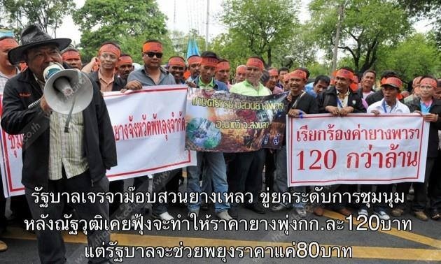 ตอนชาวนา ออกมาประท้วงไม่ยอมรับ13,000฿ รัฐบาลเปิดโต๊ะคุยด้วยอย่างดี แล้วปรับราคาให้ทันที กลับไปที่15,000฿ พอชาวสวนยาง ออกมาขอให้อุ้มราคาบ้าง รัฐบาลใช้ตำรวจ ต้อนรับ เล่นซะ ปางตาย ตัวเลข 120฿ นี่ไม่ใช่เขาคิดกันเองนะ มีทุยชื่อเต้น เคยไปประกาศบอกไว้เอง