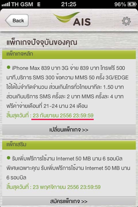 ผมใช้แพคเกจ Iphone Max ของ AIS อยู่ และจะสิ้นสุดวันที่ 23 กันยายน 2556 นี้