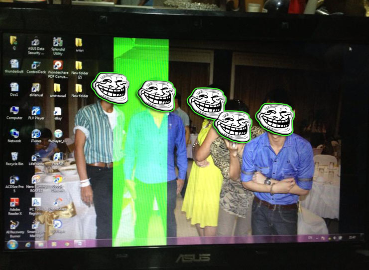 อยู่ดีๆหน้าจอ มันก็มีแถบสีเขียวขึ้นมาตามรูปที่เห็นครับ ไม่รู้ว่ามันเกิดอะไรขึ้น แต่ตัว NB ยังใช้งานได้ปกติครับ คลิ๊กเข้าใช้โปรแกรมอะไรได้ปกติ เพียงแค่จอภาพมันจะเป็นแถบสีเขียวดังรูปอยู่ตลอดเวลาเลยครับ อาการมันคล้ายทีวีเสีย