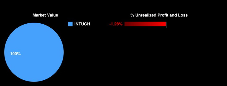 ถือตัวเดียวทั้งพอร์ต เพราะวันนึง ผมเห็นรถ 6 ล้อ บรรทุกไข่คว่ำแบบหงายท้อง ปรากฏว่า ไข่ไก่แตกหมดเป็นแสนฟองเลย น้ำสีเหลืองนองเต็มพื้น ทำให้ผมเชื่อว่า ทฤษฎีไข่ในตะกร้าคงจะไม่จริง ผมเลยลง intuch ตัวเดียว ถ