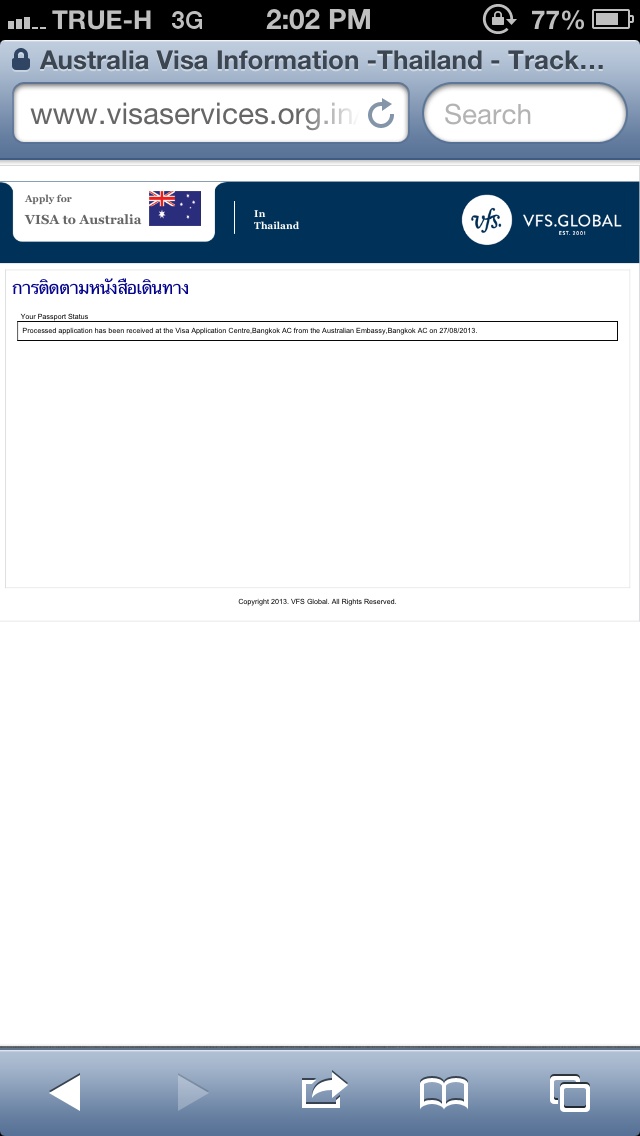 ผมยื่นที่ VFS Aus วันศุกร์ที่ 16/8/2013 ครับ