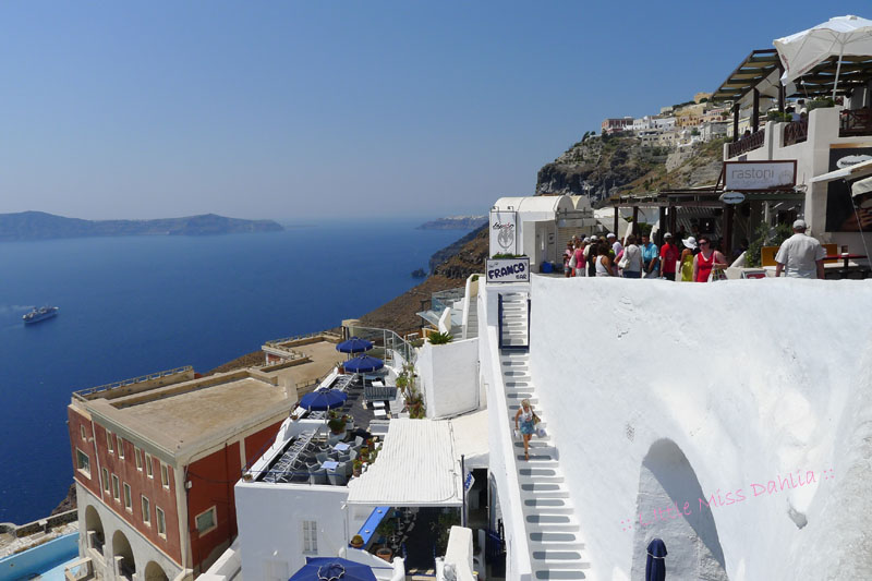 ยามเย็นตัวเมือง Fira นี่คึกคักดีนะคะ ผู้คนคงออกมาเดินสูดบรรยากาศยามเย็นกัน หันไปทางไหนมีแต่คนเดินไปเดินมา เอ๊ะ...หรือถนนมันแคบเลยรู้สึกว่าคนเยอะ สงสัยคิดไปเอง -__-''