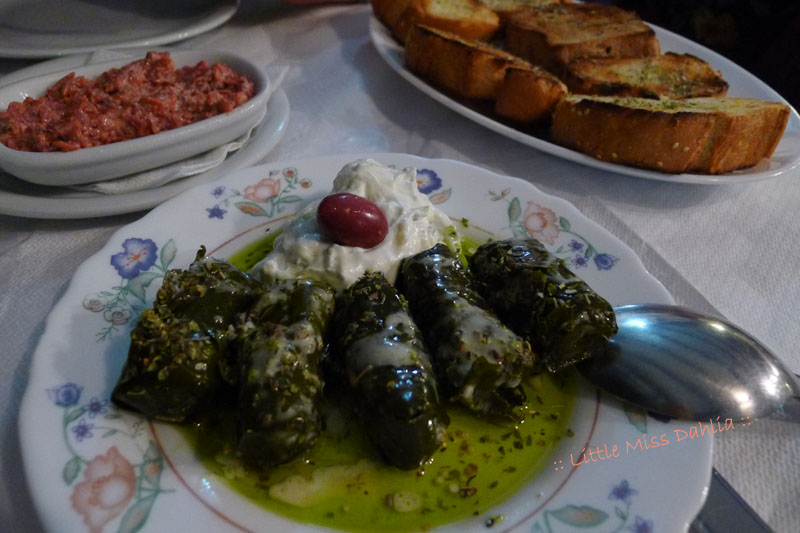 18. จานนี้ชื่อ Greek Dolmades ค่ะ (เป็นข้าวและเนื้อแต่ไม่แน่ใจว่าเนื้ออะไรที่ห่ออยู่ข้างในใบองุ่น ราดน้ำมันมะกอก รสชาติออกเปรี๊ยวๆเวลากินจึงทำให้นึกถึงแหนมบ้านเรา) แต่ไอจานเล็กๆที่เสริฟคู่กันมาอร่อยมากจนต้องถามว่ามันคืออะไร ได้ความว่าเป็นครีมบีทรูธค่ะ ทากับขนมปัง ทานกันพอดิบพอดี อร่อยยยยย...
