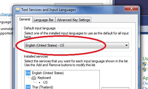 ตั้งค่า Defualt Input Language เป็นภาษาอังกฤษแล้วก็ยังไม่หาย