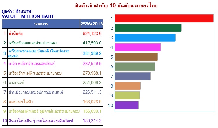 ประเทศไทยมีสัดส่วนการนำเข้าน้ำมันเป็นอันดับ 1