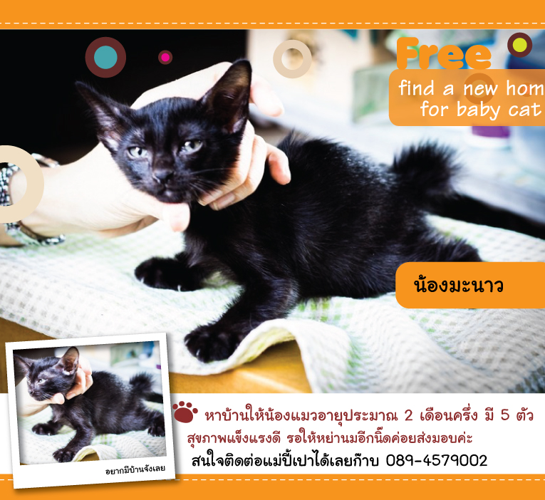 น้องมะนาว เด็กหญิง เป็นน้องแมวสีดำๆ หางกลมๆ น่ารักๆ
