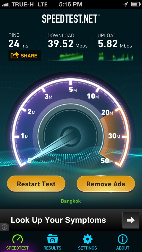 วันนี้(1 พย.2557) อยู่ๆความเร็ว 4G ในโทรศัพท์ iphone 5s ก็ลดลงอย่างน่าตกใจ ไม่ว่าจะแก้ไข(ตามคำแนะนำของ call center)ยังไง ความเร็วก็ได้แค่ 200-300 kbps ทั้งๆที่