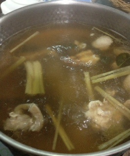 เตรียมน้ำซุป ใช้ซุปก้อนหมูหนึ่งก้อนค่ะ เอาซี้โครงหมู ใส่ลงไปนิดหน่อยค่ะ ครั้งนี้ได้ตรงกระดูกอ่อนมา ต้มให้เปื่อยเลยค่ะ ใส่ ข่า ตะไคร้ ใบมะกรูด ลงไปเลยค่ะ ปรุงรสด้วย น้ำมันหอยค่ะ น้ำตาลเล็กน้อย แค่นี้ซุปจิ้มจุ่มเราพร้อมแล้วค่ะ