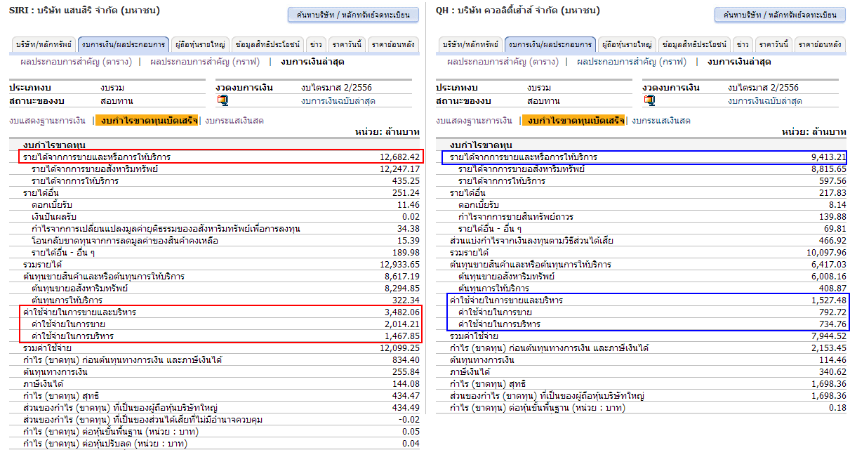 ต้นทุน กับ ยอดขาย SIRI vs QH