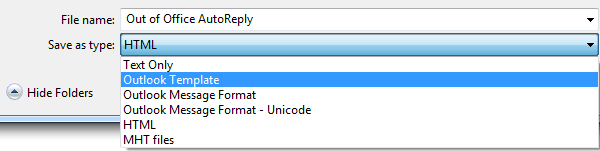 Step 3: Select "Outlook Template", click Save button.