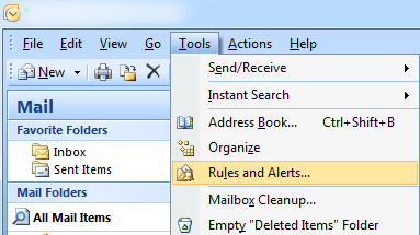 Step 4: Close the mail message and Click Tools > Rules and Alerts.